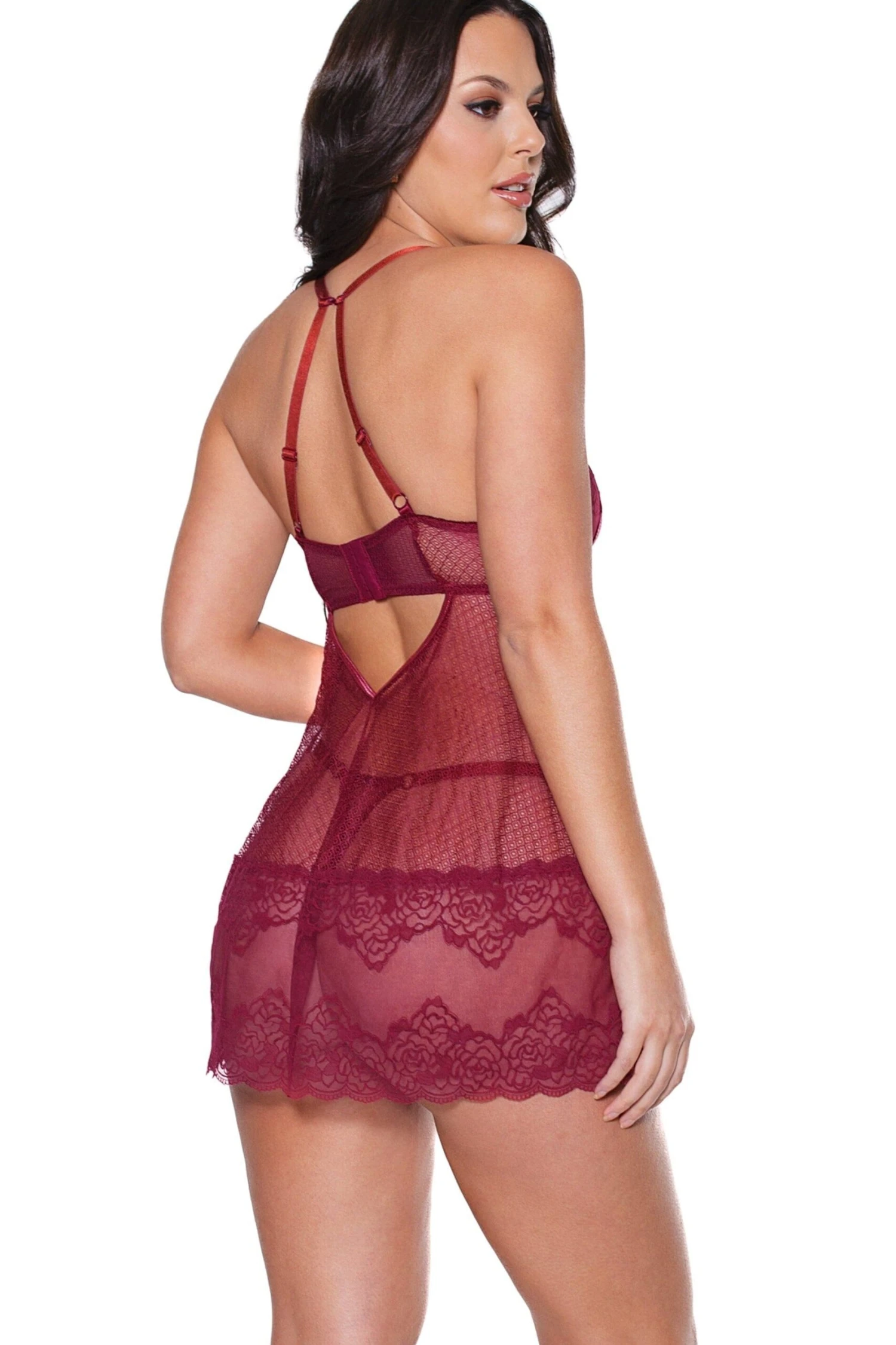 Babydoll with adjustable thong and soft underwire cut-away cups.