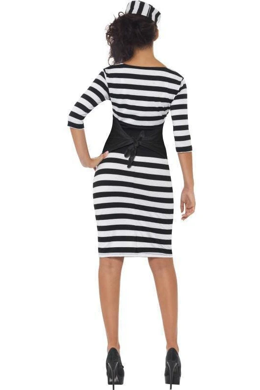 Classy Convict Costume | Black & White | with Dress | Waist Cincher and Hat