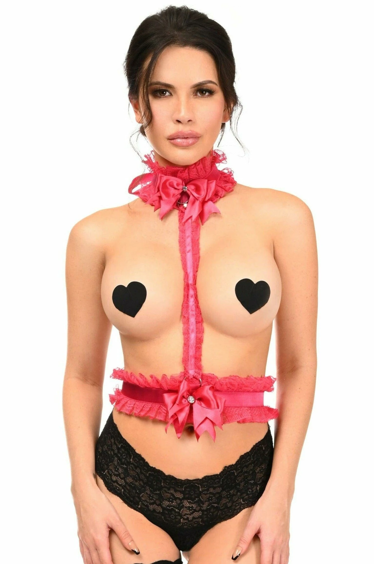 Kitten Collection Fuchsia/Fuchsia Lace Single Strap Body Harness
