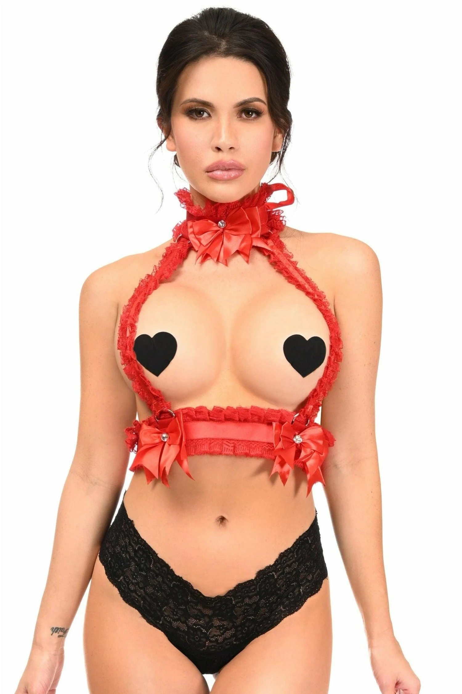 Kitten Collection Red/Red Lace Double Strap Body Harness