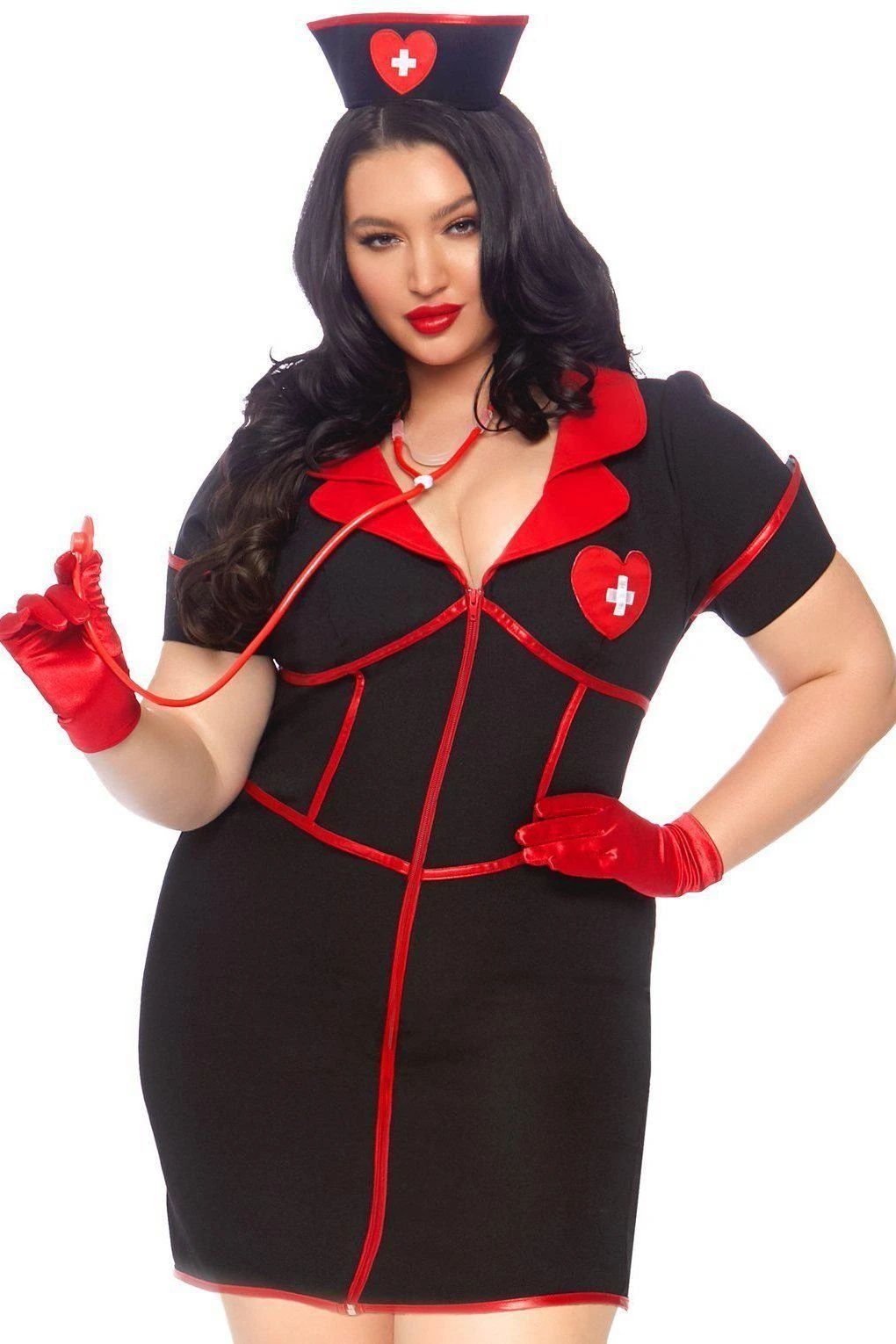 Leg Avenue 2 PC Bedside Babe, includes zipper front dress with heart accent and matching hat.