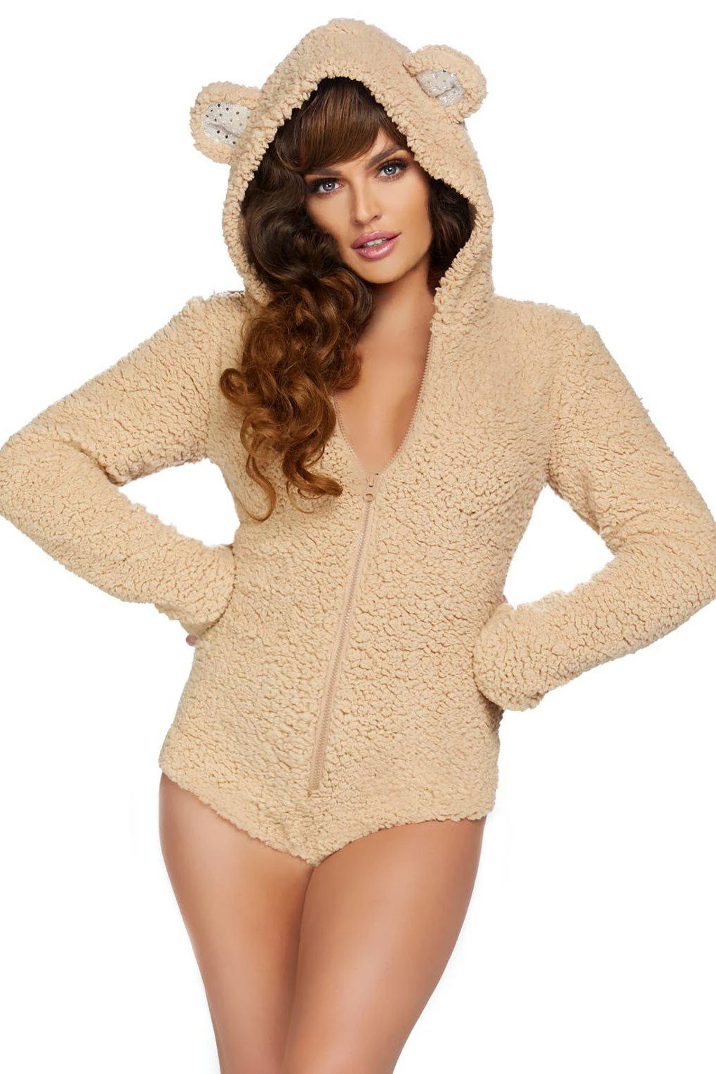 Leg Avenue Teddy Bear, features ultra soft plush zip up bodysuit with ear hood and tail.