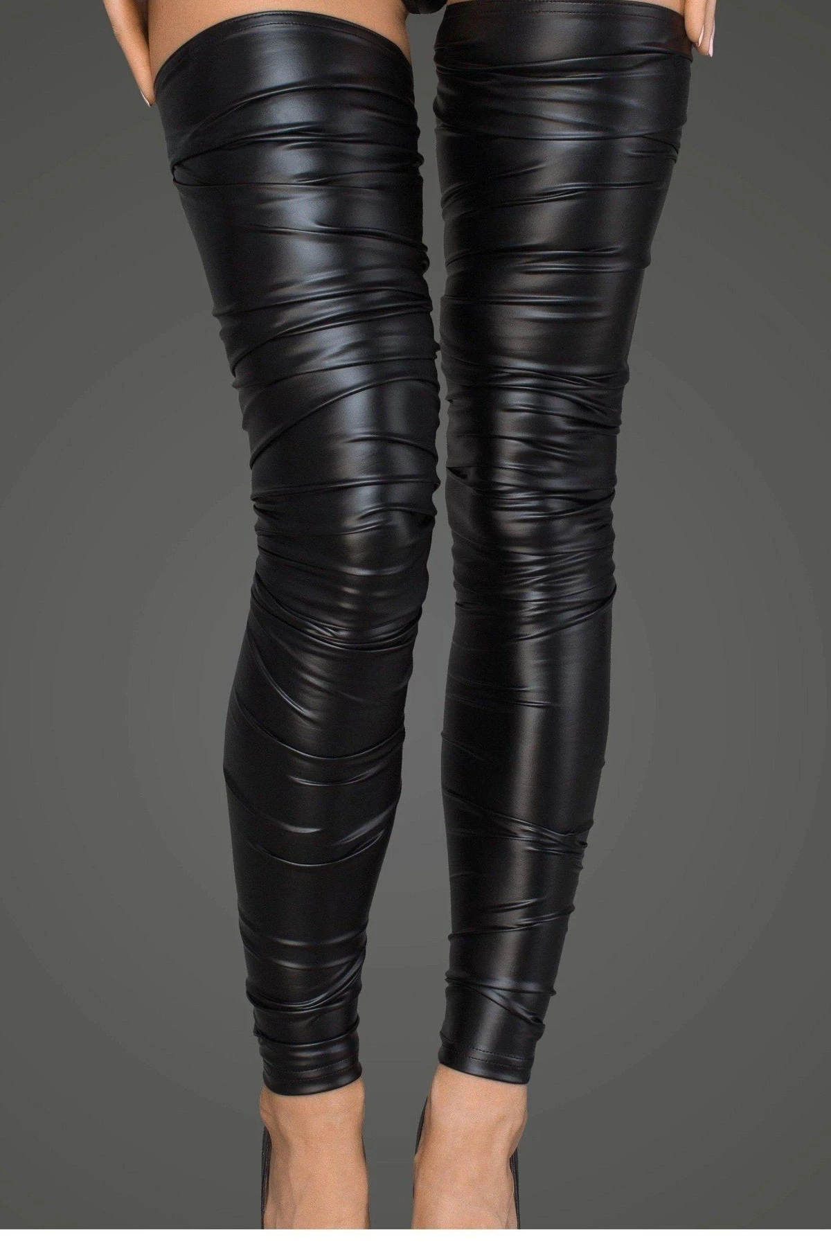 High crinkled stockings made of powerwetlook will push the others into background and will put you in the spotlight.