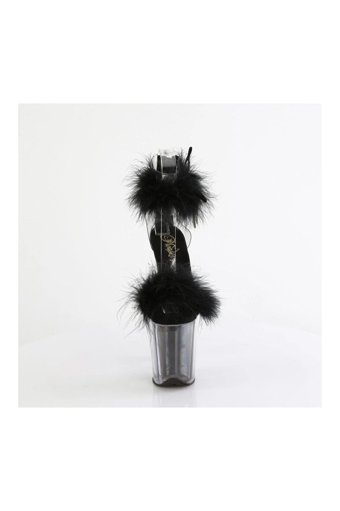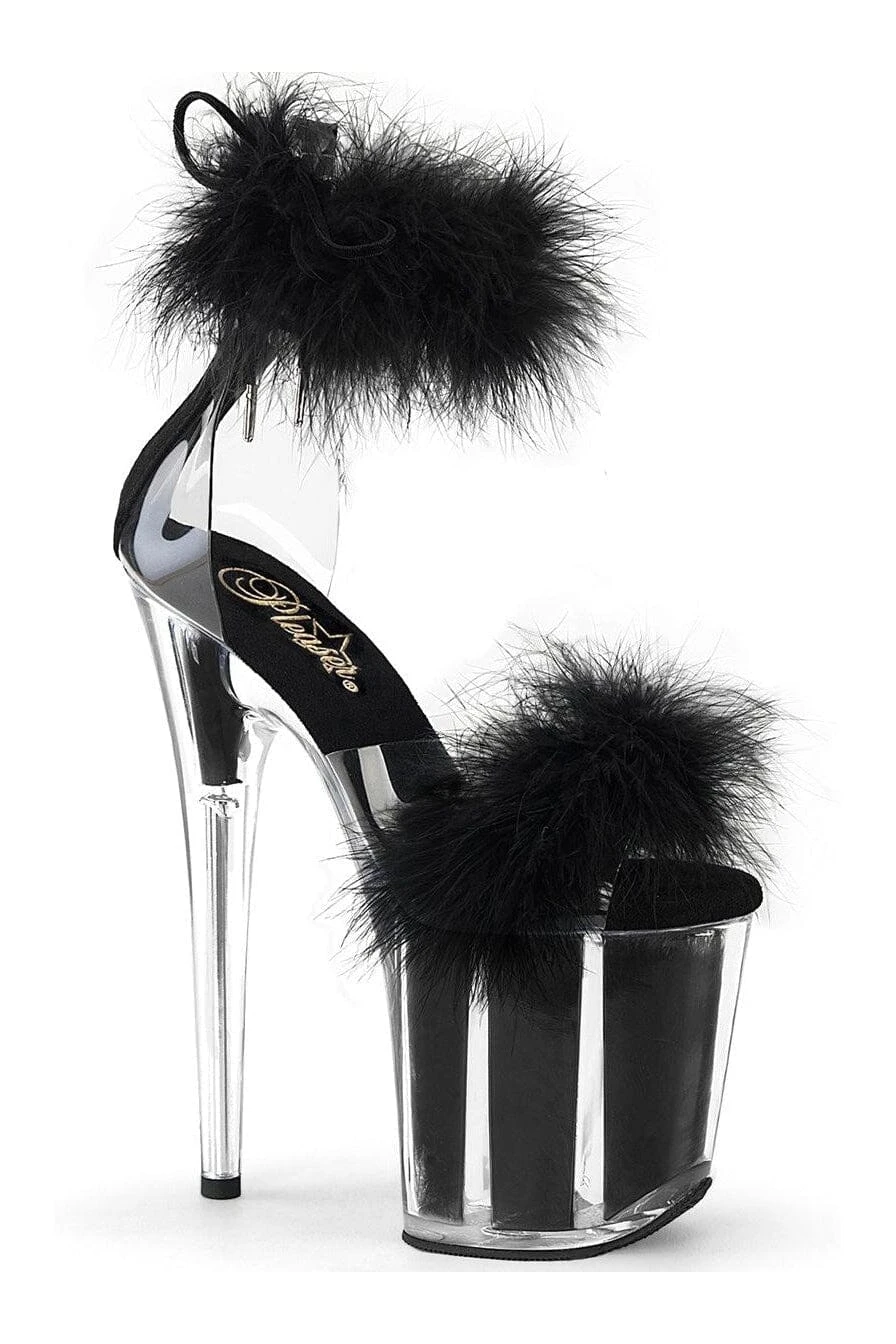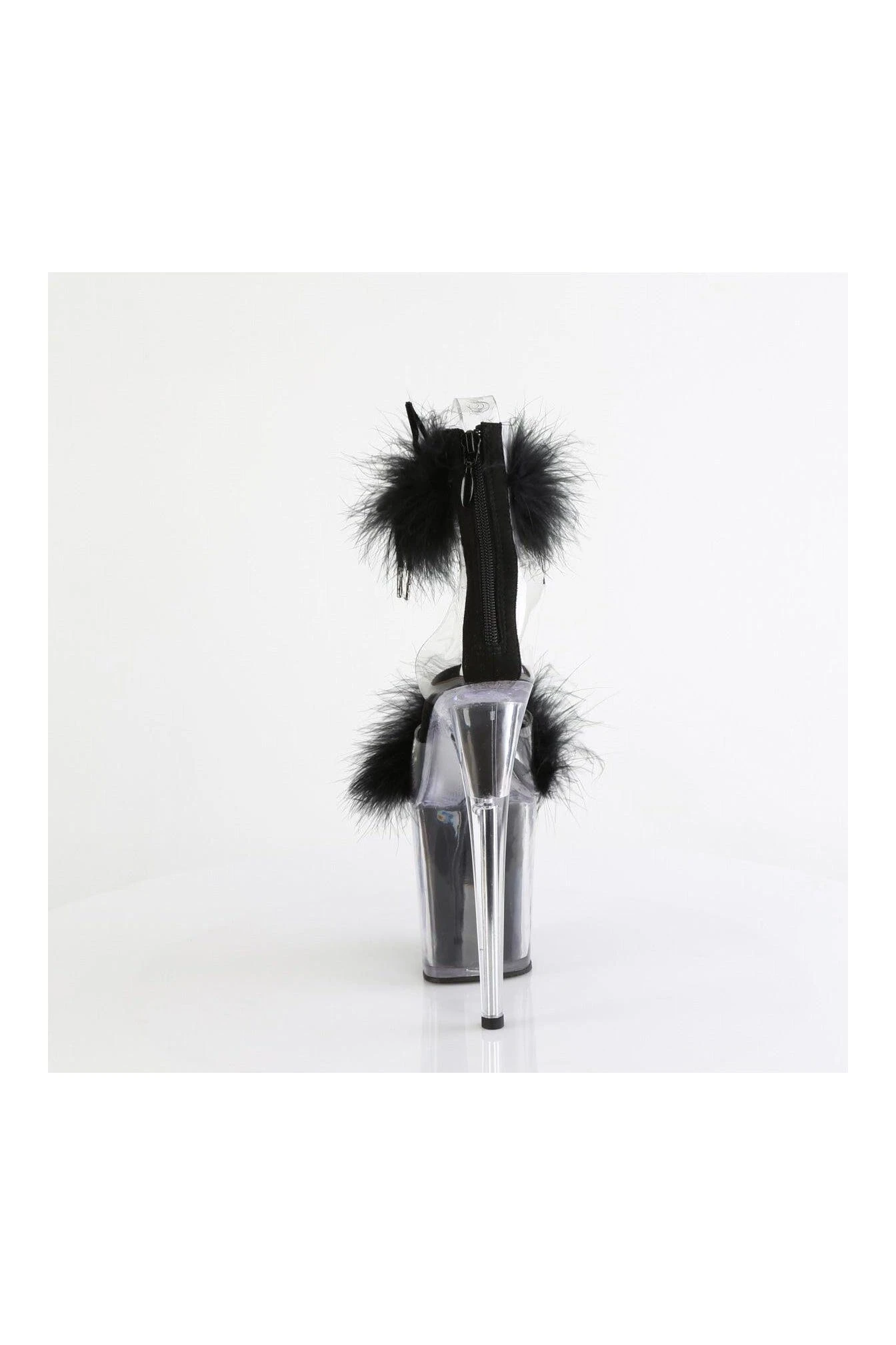 8″ Heel, 4″ Platform Marabou Fur Ankle Cuff Sandal, Back Zipper