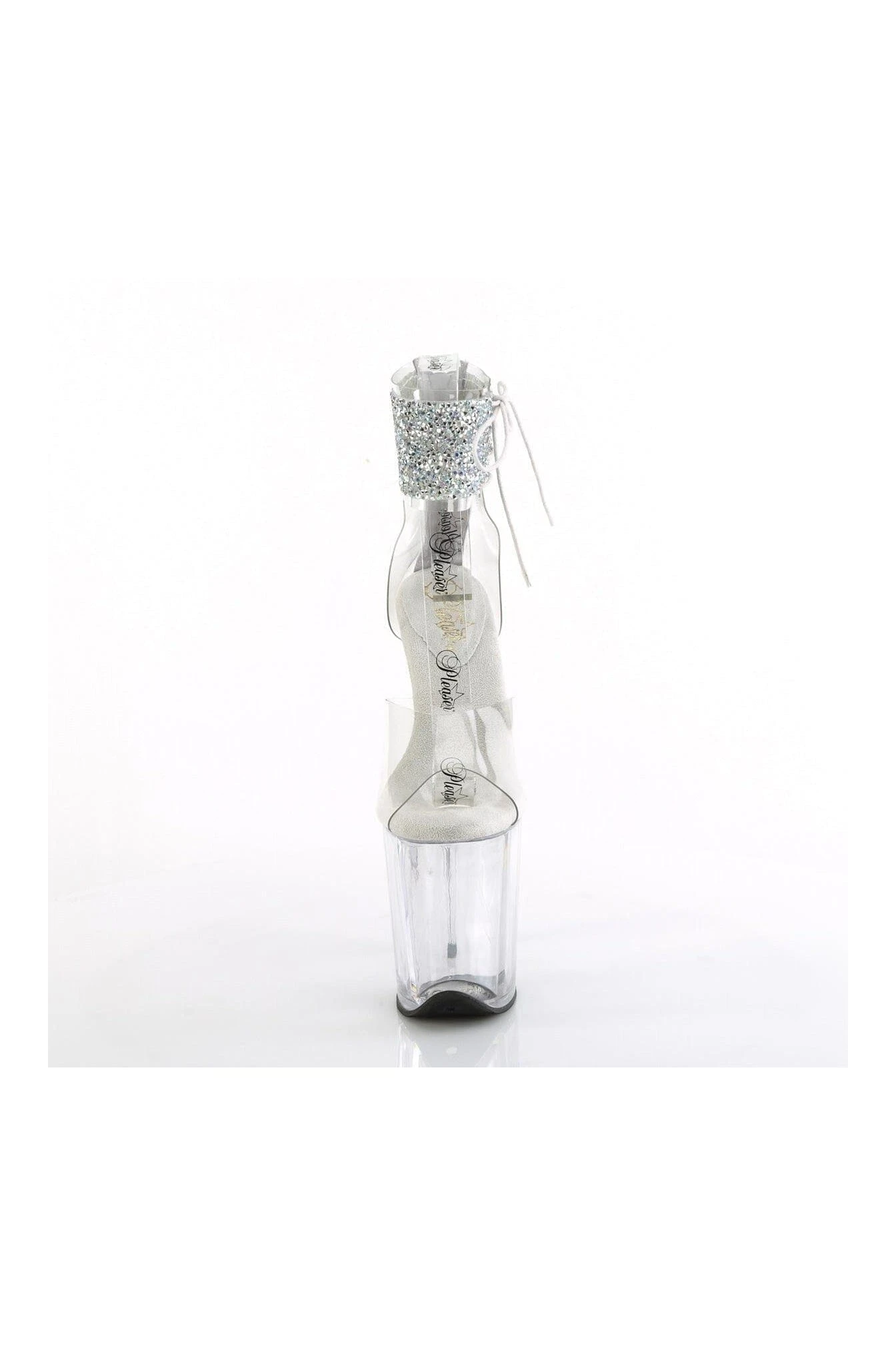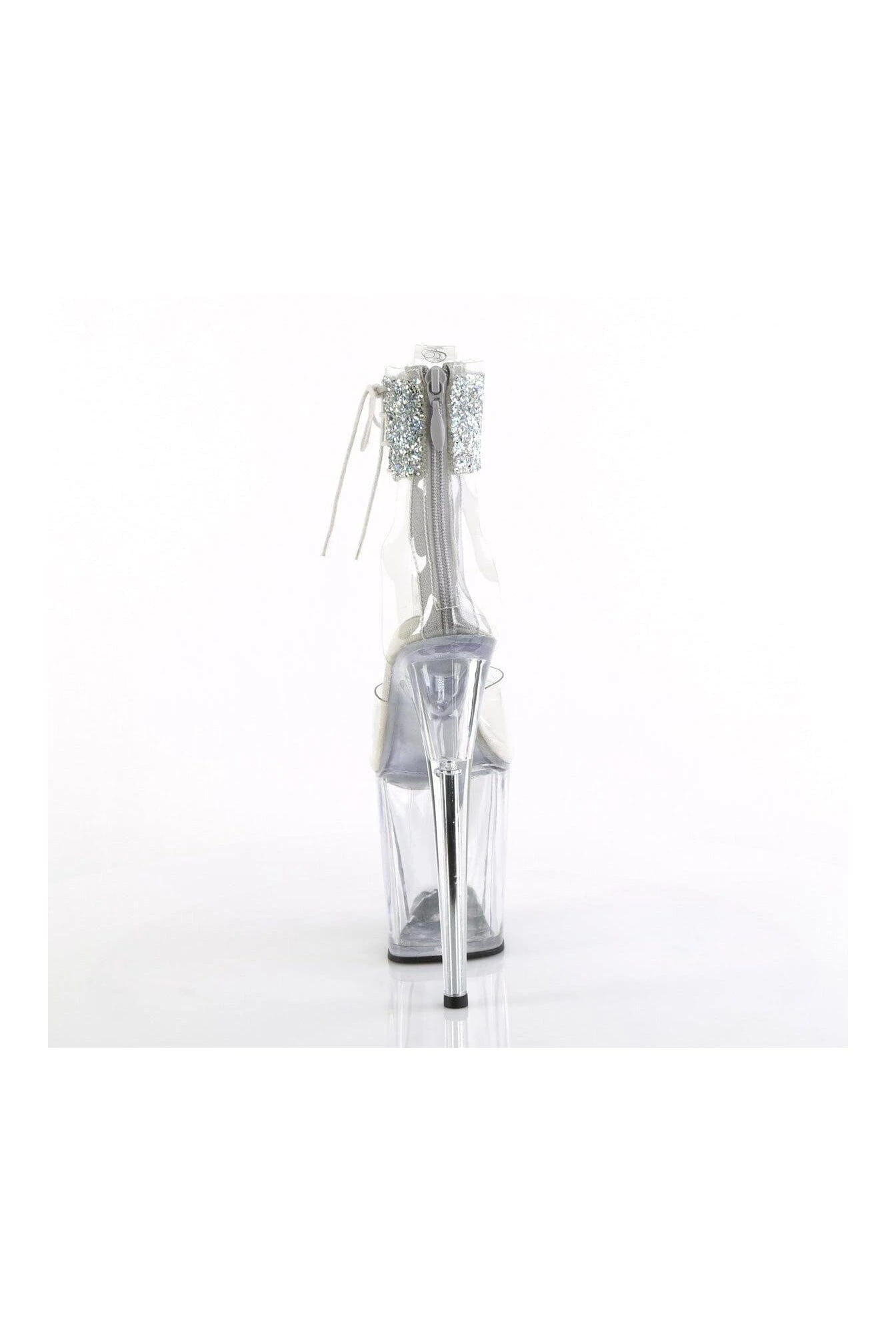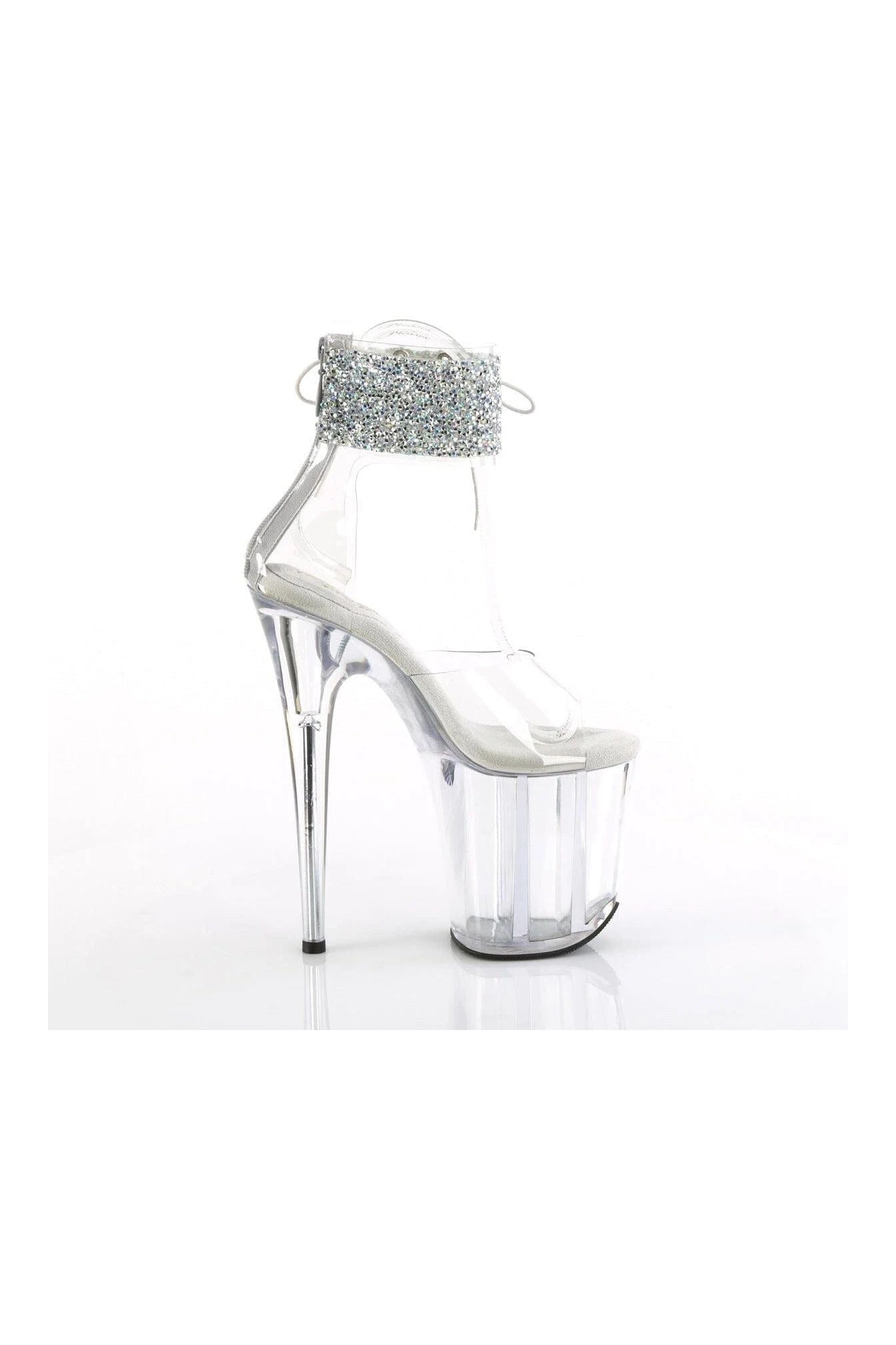 8″ Heel, 4″ Platform Ankle Cuff Sandal w/Rhinestone, Back Zipper
