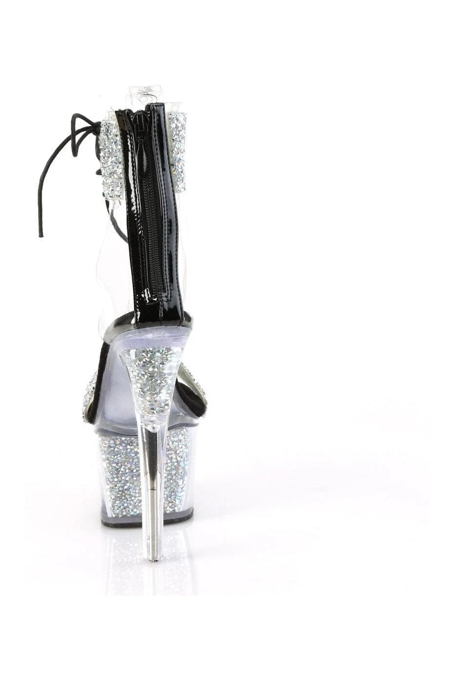 7″ Heel, 2 3/4″ Platform Ankle Cuff Sandal w/Rhinestone, Back Zipper