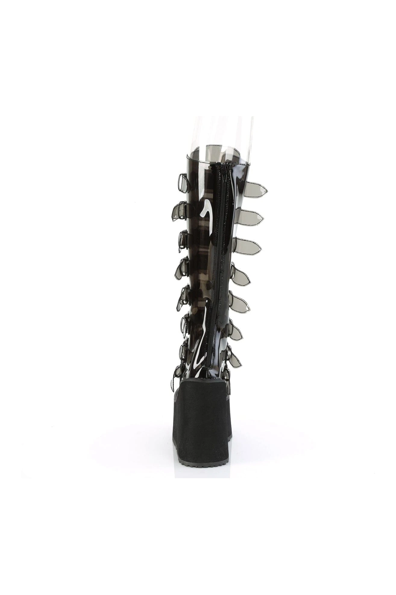 5 1/2″ Platform Knee High Boot with eight Buckle Straps, Back Metal Zipper